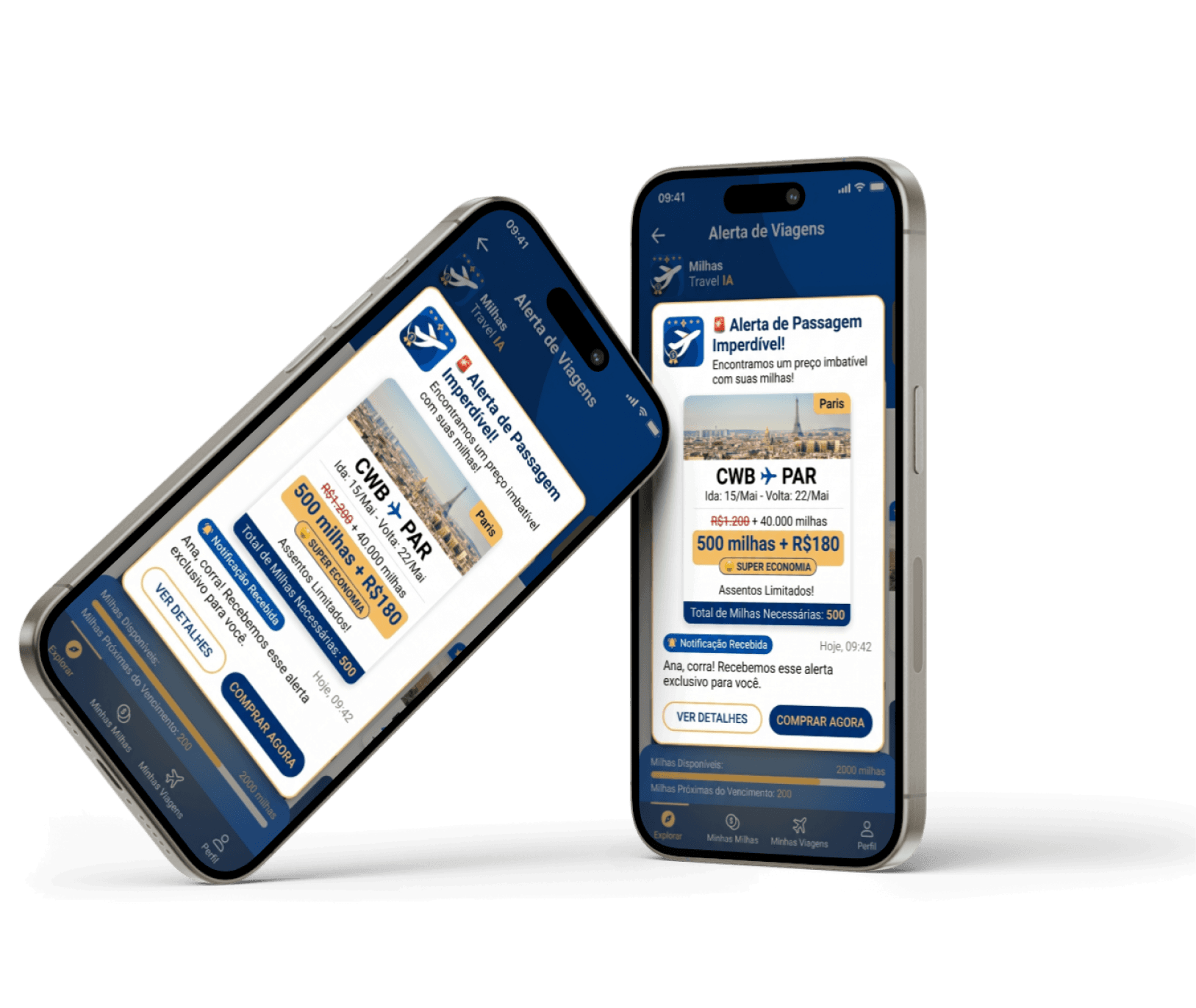 Quando uma tarifa abaixo do mercado aparecer para o seu destino, você recebe uma notificação em tempo real, diretamente no seu celular para comprar com milhas ou dinheiro.